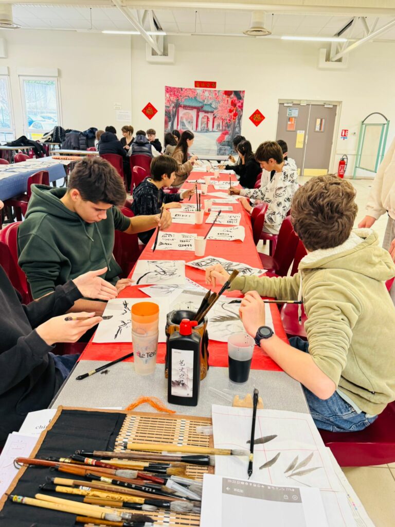 Calligraphie, peinture traditionnelle, découpage de papier et écriture de couplets du Nouvel An chinois leur ont permis de découvrir la symbolique et la finesse de cet art ancestral.