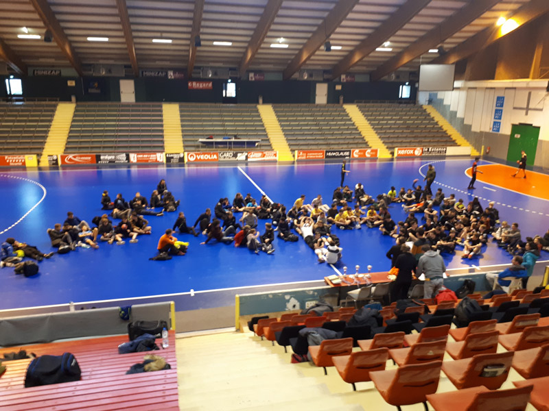 Les séquences d’entraînement se déroulent en général dans notre gymnase, quant aux séquences de compétition du district elles se déroulent sur les différents sites des établissements scolaires de Montélimar, en fonction des catégories d’âge.