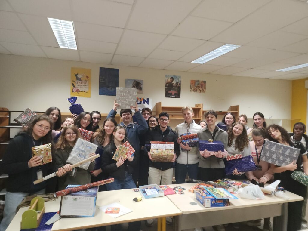 Nos élèves ont remis une belle collecte de jeux aux Restos du Cœur. Merci à toutes les familles pour leur générosité et un grand bravo aux lycéens qui ont préparé avec soin l’ensemble des paquets cadeaux. Ensemble, nous adressons un Noël rempli de joie et de douceur aux familles accompagnées par les Restos du Cœur.