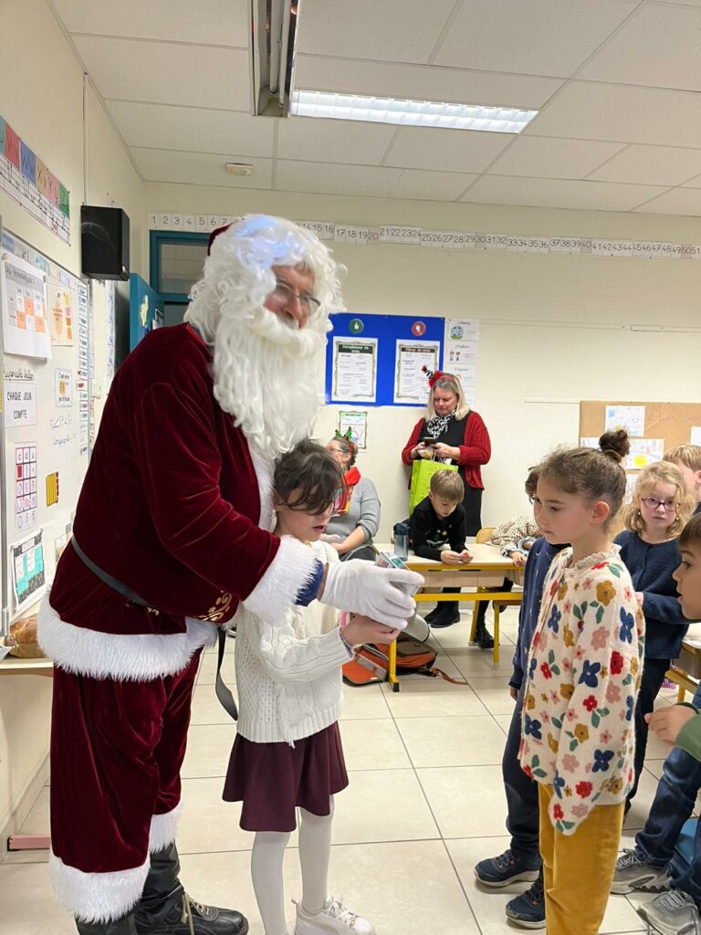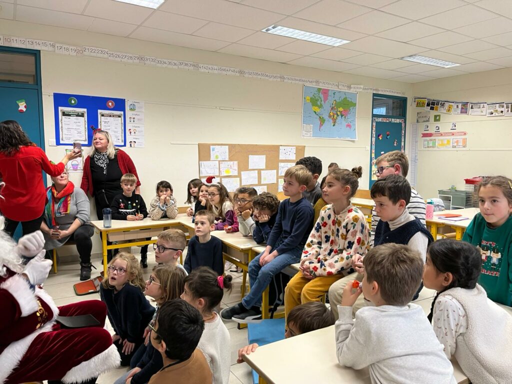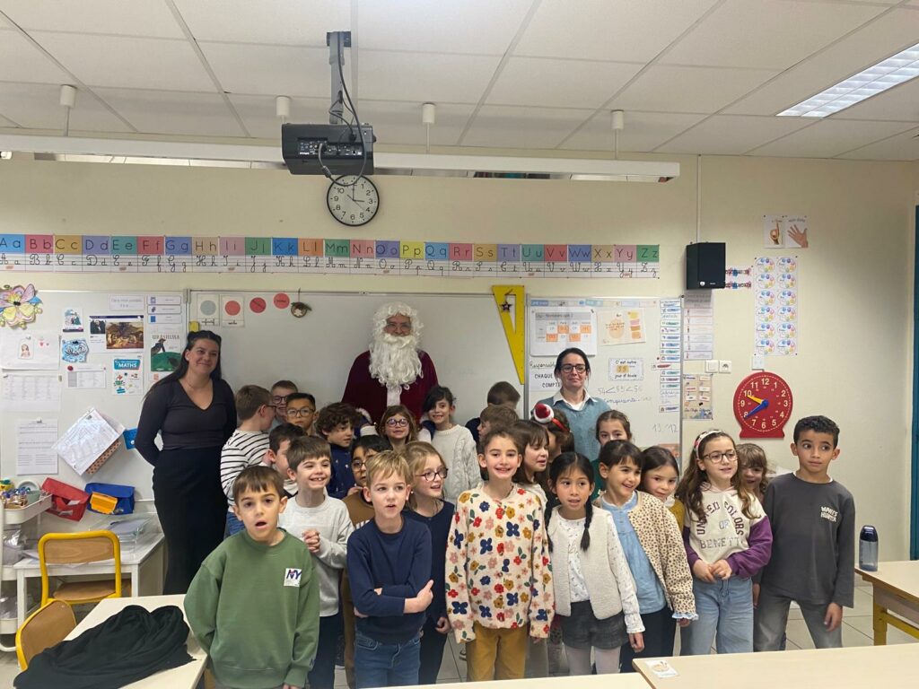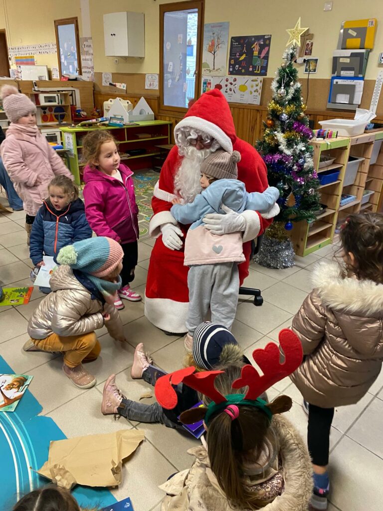 Les maternelles d’Allan ont vécu une journée riche en surprises. Ils ont eu la chance de regarder Niko le petit renne, Mission Père Noël, de partager le repas de Noël avec leurs camarades, puis d’assister au spectacle Le Petit Chapeau Rond Rouge. L’après-midi s’est poursuivie avec une visite très attendue : le Père Noël venu les bras chargés de cadeaux. Pour clôturer ce beau moment, l’APEL leur a offert un goûter que nous avons dégusté tous ensemble, dans la joie et la bonne humeur.
