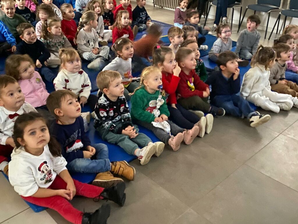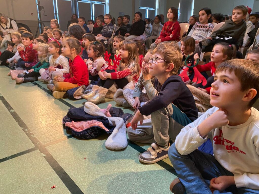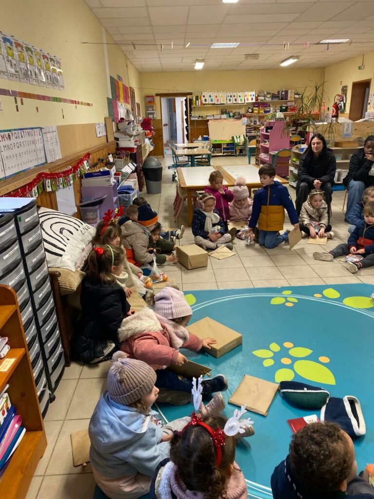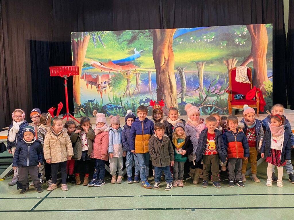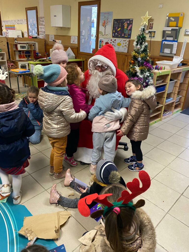 Les maternelles d’Allan ont vécu une journée riche en surprises. Ils ont eu la chance de regarder Niko le petit renne, Mission Père Noël, de partager le repas de Noël avec leurs camarades, puis d’assister au spectacle Le Petit Chapeau Rond Rouge. L’après-midi s’est poursuivie avec une visite très attendue : le Père Noël venu les bras chargés de cadeaux. Pour clôturer ce beau moment, l’APEL leur a offert un goûter que nous avons dégusté tous ensemble, dans la joie et la bonne humeur.
