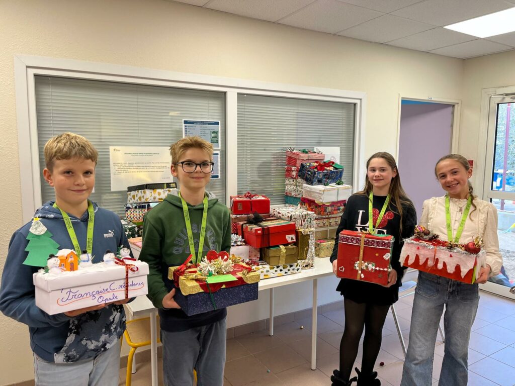 Dans le même esprit, les élèves de CM2 et de sixième ont préparé des boîtes de Noël destinées aux résidents de l’EHPAD Émile Loubet. Cette belle action leur a permis de vivre concrètement les valeurs de partage, d’attention à l’autre et de solidarité. Félicitations à eux pour leur engagement.