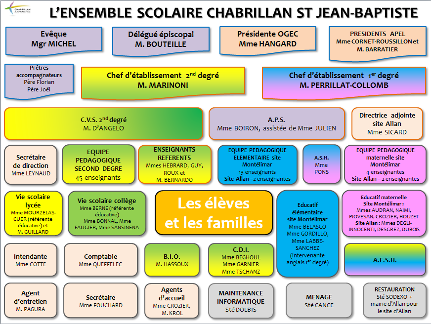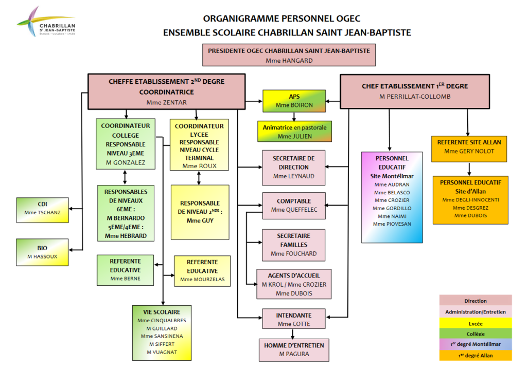 Veuillez trouver ci-dessous l’organigramme de notre structure scolaire pour nos deux sites d’Allan et de Montélimar.