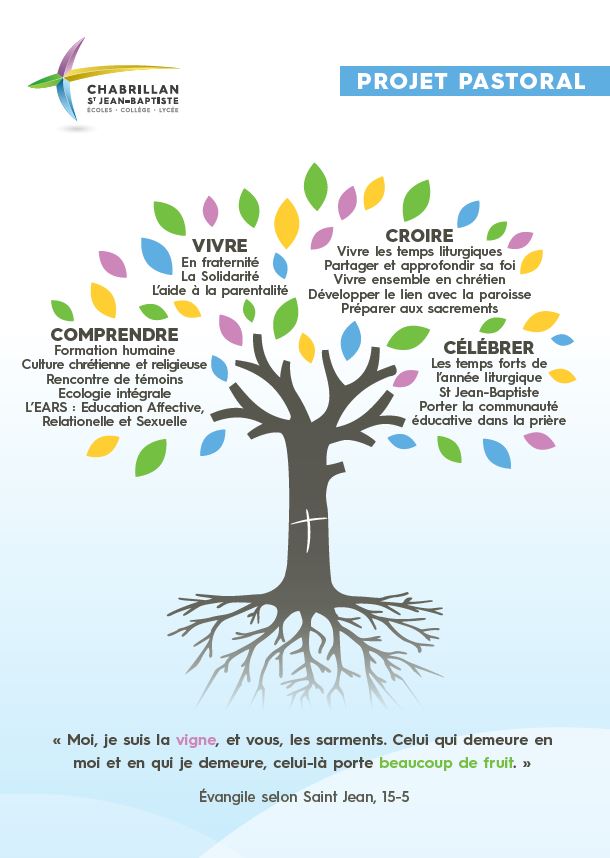 Notre projet pastoral, actualisé en 2022, s’articule autour de : COMPRENDRE – VIVRE – CROIRE – CÉLÉBRER